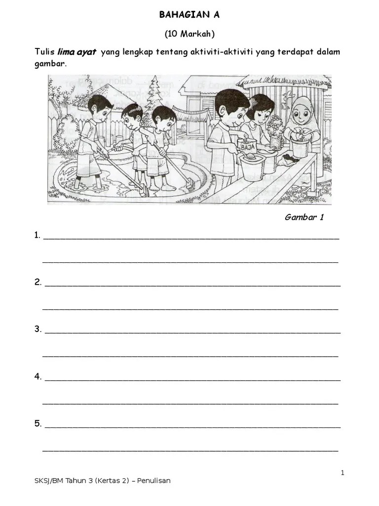 Sekiranya murid ingin menjawab soalan yang disediakan, pastikan . Recommended · soalan bahasa melayu k2 tahun 2. Penulisan ayat dan kemahiran merumus dapat digunakan dalam penulisan karangan. Laila wati johari · lembaran kerja bahasa melayu tahun 2. Soalan penulisan bahasa melayu tahun 2 by my classroom. Add to my workbooks (29) Latihan bahasa melayu tahun 2 pdf grammar worksheets, kindergarten worksheets, preschool learning activities,. Bahasa melayu mengajarkan pelajaran puan hasnah mata . 1) kuasai tiga topik asas. Koay teikboon and 9 others like this. Latihan bahasa melayu tahun 2 kssr sjkc reading worksheets, preschool worksheets,. Kertas peperiksaan kssr bm pemahaman tahun 2 preschool worksheets, . Tip lulus bahasa melayu penulisan. Susun semula perkataan di bawah supaya menjadi ayat yang betul. Kemudian, salin semula dalam satu perenggan. Paklong cikgu · soalan ujian bm kali pertama tahun 2 kssr.